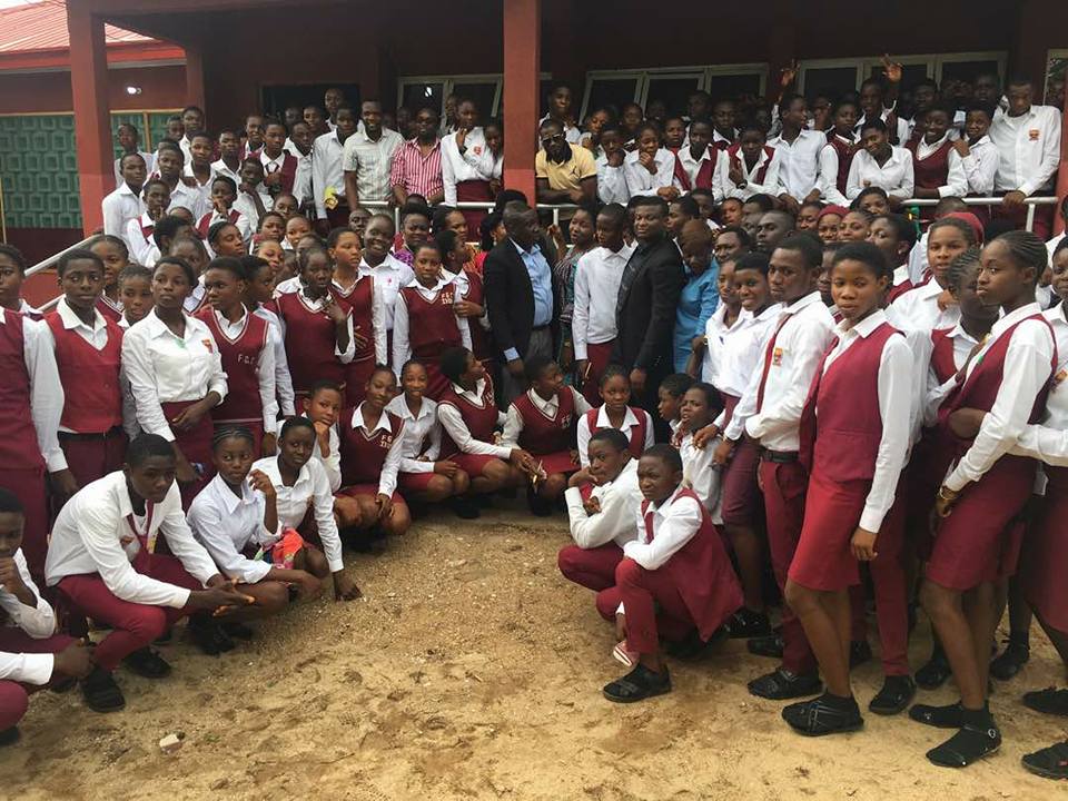 Picture showing the leader of the class of 2000 who is also the National Alumni Director of Welfare, Dr. Robert Egot, a delegation of members from the class of 2000 and a cross section of the students.